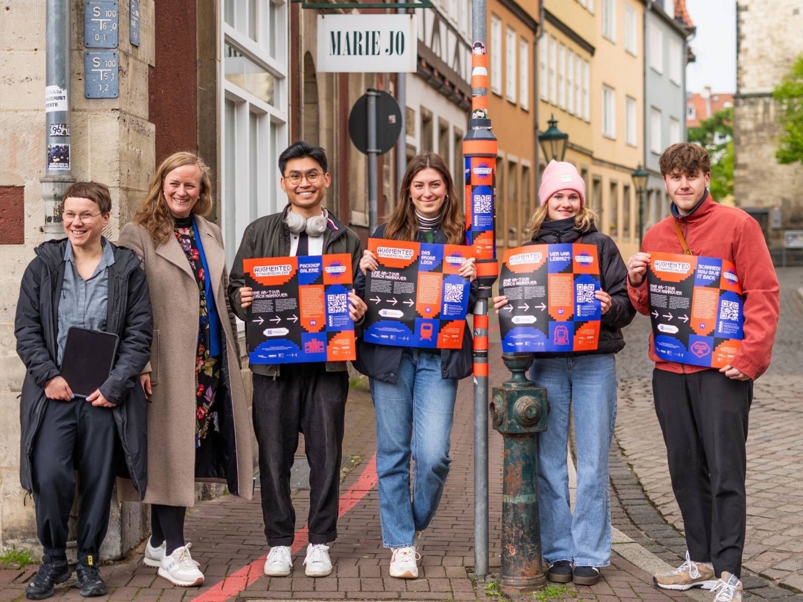 Augmented Straßenschilder startete 2023 als weltweit einmaliges Pilotprojekt und wurde nun in enger Zusammenarbeit mit dem Historischen Museum Hannover um weitere Arbeiten ergänzt. Studierende des Studiengangs Visuelle Kommunikation der Hochschule Hannover haben unter der Leitung von Prof. Maiken Laackmann Augmented-Reality-Arbeiten entwickelt, die die Geschichten und Ereignisse aufgreifen, die sich hinter den Straßennamen und Ortsbezeichnungen in Hannovers historischem Zentrum verbergen. Im Rahmen des Programms „Geschichte unterwegs“ stellte das Museum den Studierenden dafür historische Informationen zu diesen Orten zur Verfügung.