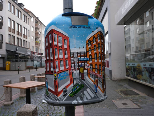 Künstlerischer Mülleimer im Volgersweg/Eichstraße