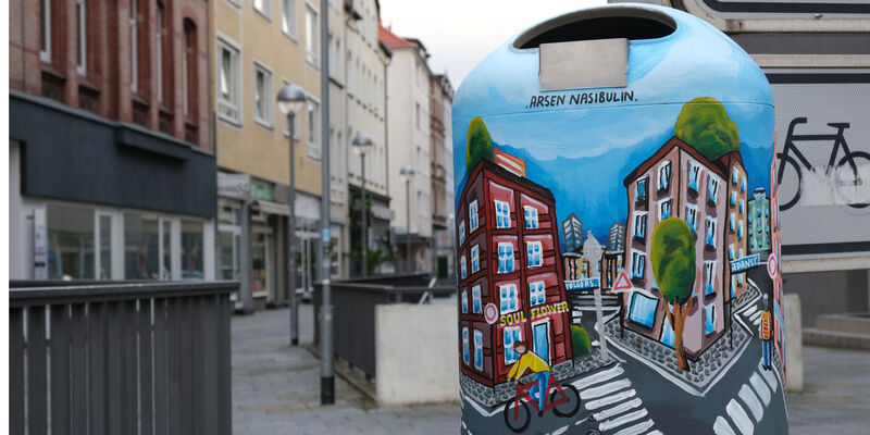 Der Volgersweg in der Oststadt wird bunt! Die Einkaufsstraße, die vom Hauptbahnhof in die Oststadt führt, bekam neue Highlights in Form von künstlerisch gestalteten Mülleimern. Den Austausch übernahmen zwei Mitarbeiter der Stadtreinigung Hannover.