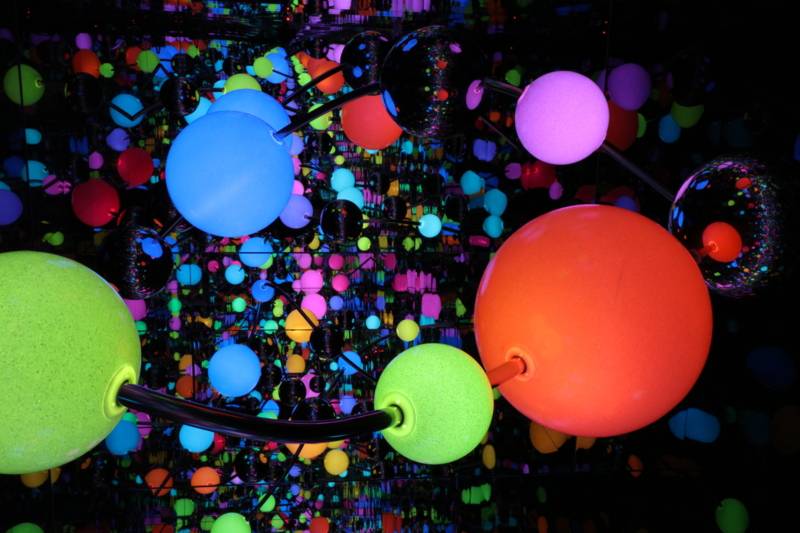 Infinity Mirrored Room - The Eternally Infinite Light of the Universe Illuminating the Quest for Truth, 2020, Holz, Metall, Glasspiegel, Kunststoff, Acrylplatte, Gummi, LED-Beleuchtungssystem, Schaumstoffkugeln, Edelstahlkugeln, 296 × 622,4 x 622,4 cm, LAS Art Foundation, (c) Yayoi Kusamatudio Yayoi Kusama