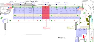 Am Nordufer wird die Bühne am östlichen Ende aufgebaut und so mehr Raum für Alexander Calders Plastik „Hellebardier“ am Kurt-Schwitters-Platz geschaffen. Dabei entsteht ein wichtiger Nebeneffekt: Durch die veränderte Abstrahlrichtung der Bühne verringert sich die Immission auf den nördlichen Teil der westlichen Südstadt.