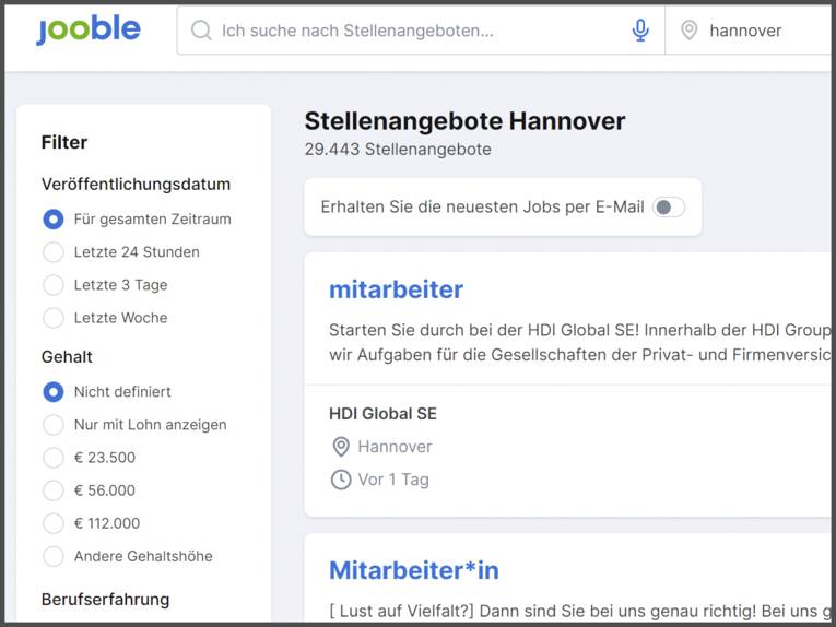 Hier finden Sie eine Auflistung verschiedener Online-Jobbörsen mit aktuellen Stellenausschreibungen aus Hannover.