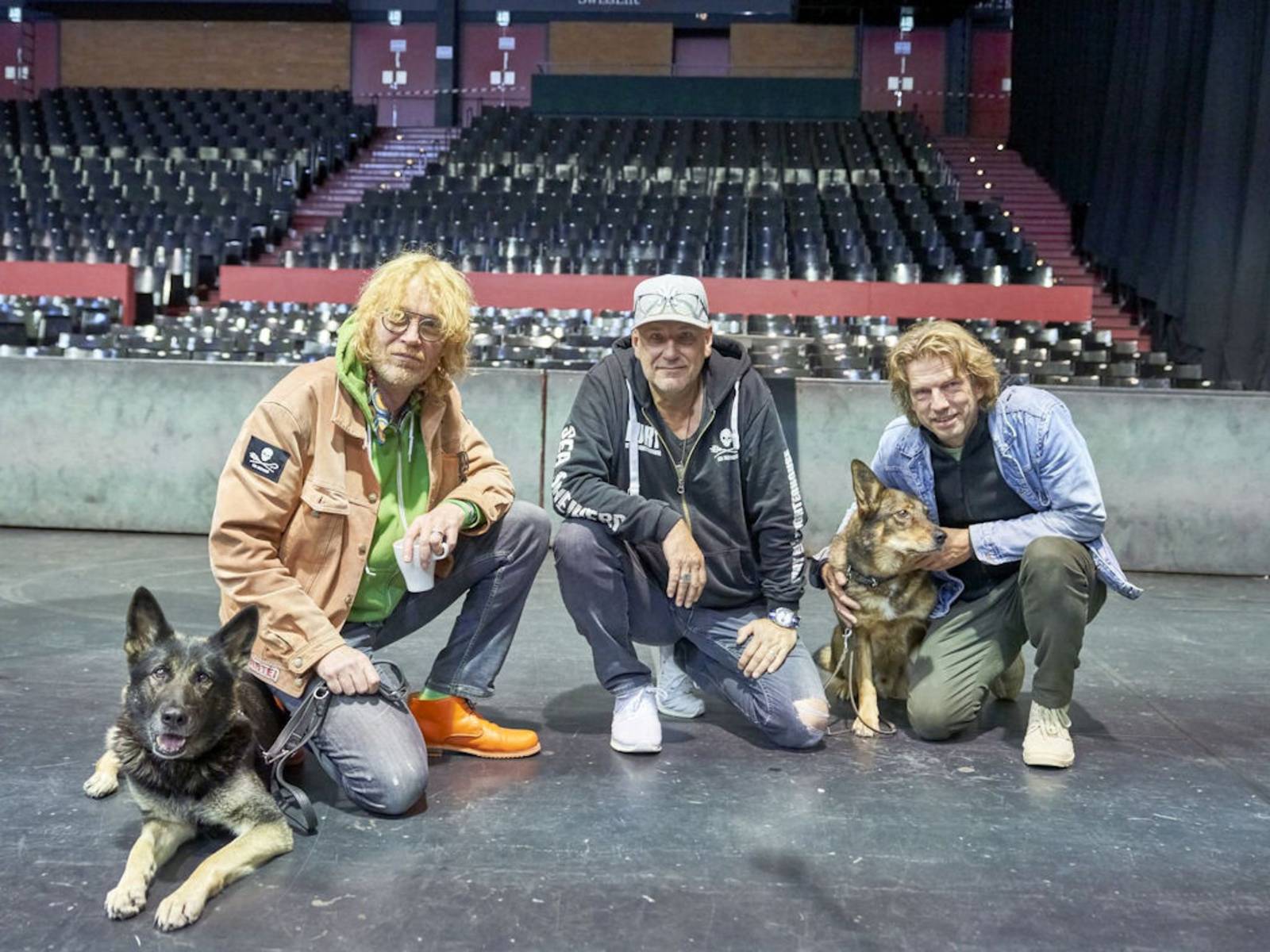 Christof Stein-Schneider, Kai Wingenfelder und Rainer Schumann mit den Spürhunden Anouka und Hund Poldi.