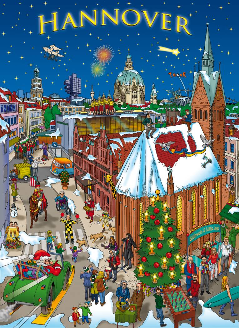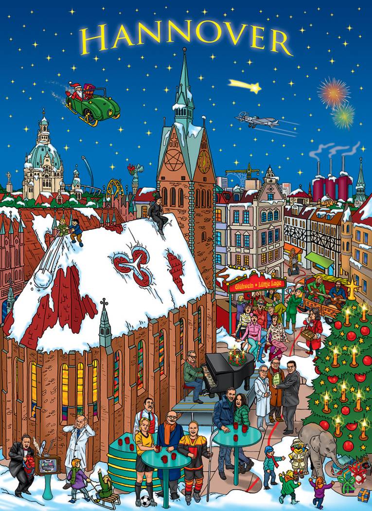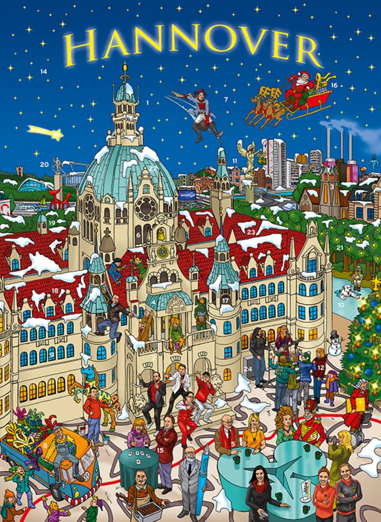 Von 2013 bis 2023: Jedes Jahr zieren viele prominente Kinder der Stadt den Hannover-Adventskalender der Firma Agitares - und immer ist irgendwo auch ein böser Mann versteckt ...