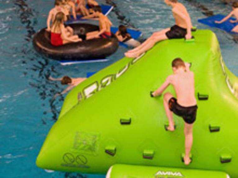 Hallenbad Burgdorf Das Hallenbad Spaßbereich am Abend im Hallenbad Burgdorf Wassergymnastik im Hallenbad Burgdorf Hallenbad Burgdorf - Schwimmerbecker Hallenbad Burgdorf Spassbecken Jugendliche auf dem aufblasbaren Klettergerät im Hallenbad Burgdorf