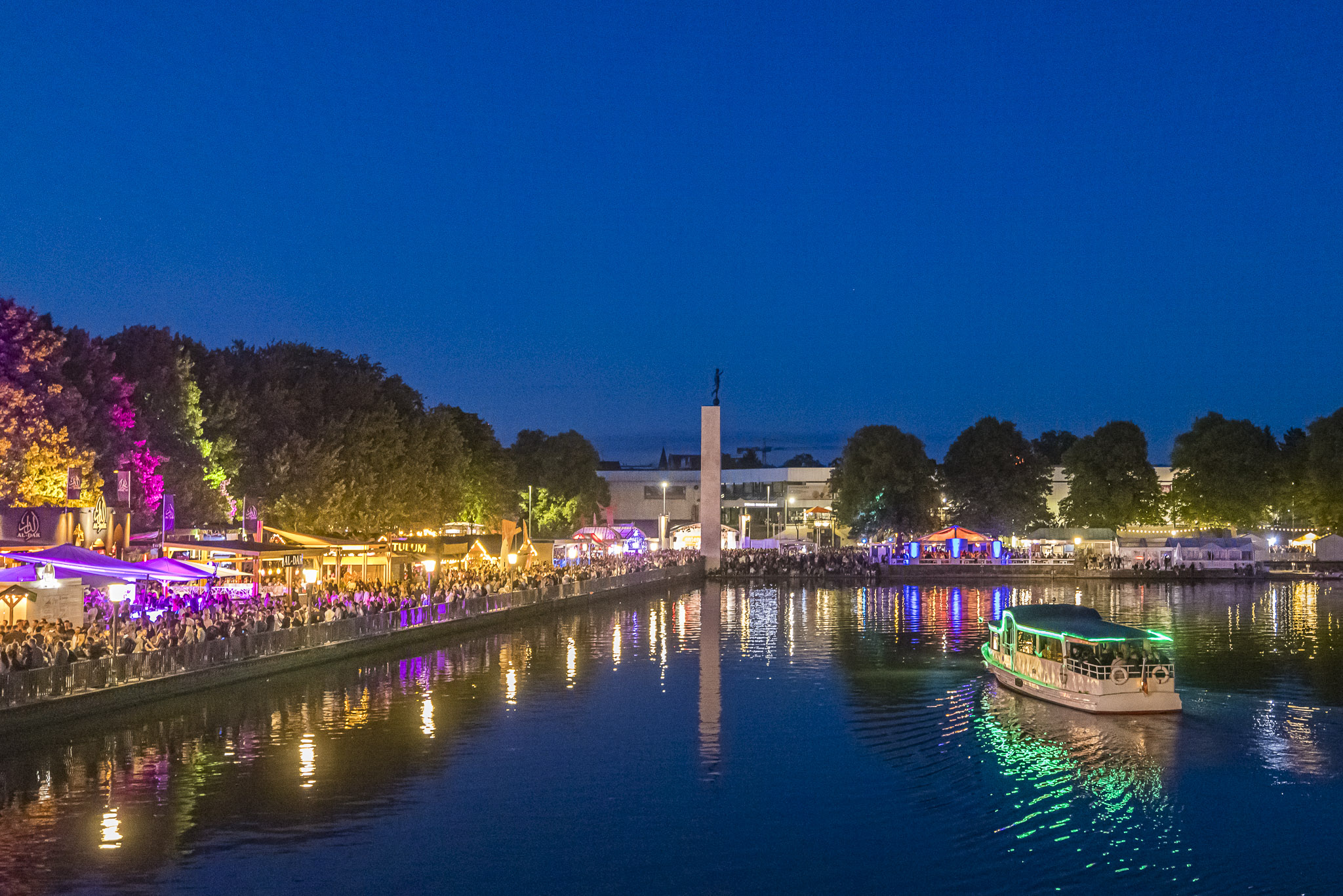 Maschsee am Abend mit Fackelläufer