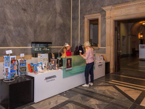 Umfassenden Service für Ihren Besuch in Hannover erhalten Sie am Infocounter im Neuen Rathaus. Hier erhalten Sie zudem Tickets für die Kuppelauffahrt.