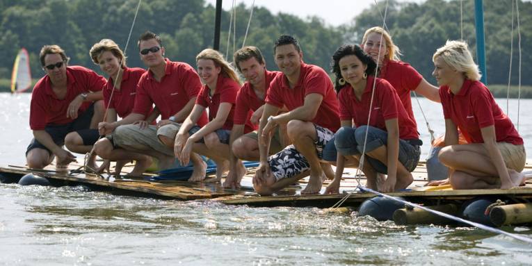 Während der anschließenden Testfahrt auf dem See wird das Floß zunächst getauft. Anschließend präsentiert jedes Team seine eigens für die Fahrt kreierte Flagge. Auf Wunsch können Sie ein großes Teamfloß bauen, ein Wettrennen der Teams gestalten oder gemeinsam die Segel setzen.
