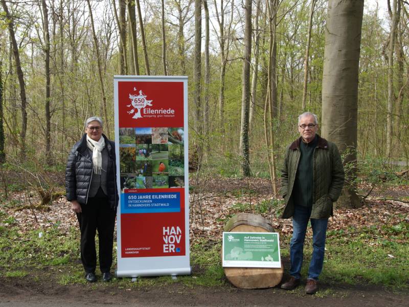 So werden die 27 wichtigsten Daten des Stadtwaldes entlang des Walter-Meyer-Wegs in der südlichen Eilenriede, Stadtteil Kleefeld, mit besonders gestalteten Informationstafeln präsentiert. Zudem hat die Stadtverwaltung ein kleines Programm erarbeitet, das – je nach Corona-Lage – von Mai bis Oktober zu 50 Veranstaltungen, vor allem Führungen, bietet.
