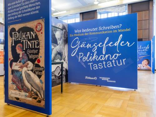 Noch bis zum 10. April 2026 lädt die Ausstellung im „Tintenturm“ der Firma Pelikan dazu ein, die Entwicklung und Bedeutung des Schreibens zu erkunden.