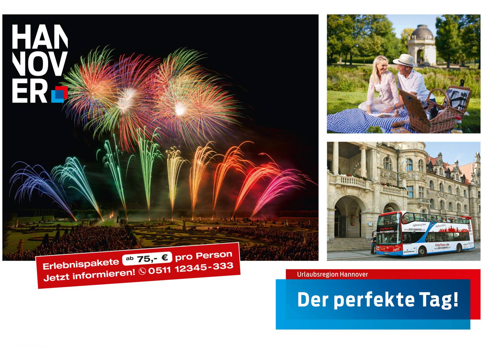 Zahlreiche Geschenkideen für einen Kurztrip mit der besten Freundin, dem Liebsten, dem großen Bruder, den Großeltern oder dem Enkel gibt auch die Winterausgabe der Hannover-Beilage Tipps und Termine. Sie liegt am 15. November den Tageszeitungen in einer Auflage von rund 1,8 Million in einem Umkreis von über 250 Kilometern um Hannover bei. Die Beilage liefert für die verschiedensten Geschmäcker und Interessen die passende Präsentidee. So reicht das Angebot von Erlebnispaketen für Wochenendtrips zum 24. Internationalen Feuerwerkwettbewerb über Übernachtungsarrangements für den Familienbesuch im Winter-Zoo, einen Tag in den Herrenhäuser Gärten mit botanischen Entdeckungen und Museumsbesuchen oder einen spannenden Nachmittag im Fernsehstudio mit „Bingo – 5 gewinnt“ bis hin zu einem glamourösen Tanzwochenende beim Opernball. Für schnippende Finger und wippende Füße sorgt das Arrangement „Jazztime“ mit einem Besuch in Hannovers legendärem Jazzclub in Linden, Gaumenfreuden und Varieté vom Feinsten verspricht das Erlebnispaket „GOP kulinarisch“ – und auch beim Wintervarieté „Lichtgestalten“ sind große Bühnenmomente garantiert. Zum Ausklang des Jahres locken die Silvester-Specials mit Kulinarik- und Übernachtungs-Arrangements zu der Silvestershow im Schauspielhaus sowie zum „Feuerwerk der Turnkunst“.