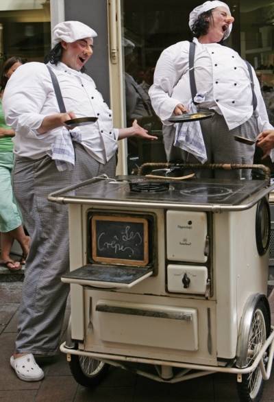 Bevor das französische Team ihre Bilder in den Himmel zeichnet, begrüßt der französische Chor „Chorale du Carrefour“ die Besucher am Eingang. Junge Artisten aus Hannover und Rouen auf Stelzen und Hochrädern freuen sich auf den Besuch auf der Kinderwiese mit deutsch-französischer Zirkuskunst. Zwei leibesfüllige Köche rollen samt Herd nahe der Sonnenuhr über die Wege und bereiten in ihrer „Cuisine mobile“ Crêpes zu - verfeinert mit Witz und Esprit. In luftiger Höhe trägt die französische Blume den Eiffelturm umher, der „große“ Napoleon Bonaparte hat sich dazugesellt. Cancan-Tänzerinnen lassen kokett ihre Röcke fliegen und zeigen viel Bein. Groß, anmutig und très charmant erfreut Marion Akkordeon mit franz-ösischen Melodien. Im Gartentheater machen sich die Musiker von La Maison Tellier aus Rouen auf die schwierige Suche nach der Freude und der Liebe. Zu hören sind starke Kompositionen, hintergründiger Humor und eine elegante Mixtur aus Pop, Folk, Country und Blues. Papanosh setzt sich auf der Probenbühne stilistisch keine Grenzen: Modern Jazz wird mühelos mit New Yorker Underground-Klängen, provenzalischen Erinnerungen, Stadtlärm und Vogelgezwitscher vermischt.