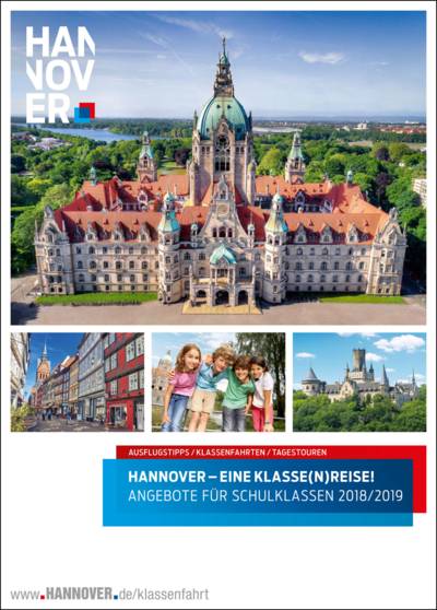 Die neue Broschüre der HMTG „Hannover – Eine Klasse(n)reise“ stellt eine Vielzahl von Erlebnisbausteinen, Tagesarrangements und Angeboten speziell für Schülerinnen und Schüler von der 1. bis zur 10. Klasse vor. Bildung die Spaß macht, in Verbindung mit actionreichen Erlebnissen und den Besonderheiten der Region Hannover lassen Tagesausflüge und Klassenfahrten zu einem besonderen, anschaulichen Erlebnis werden. Beim Rundgang durch die hannoversche Altstadt, bei der Fahrt mit dem Doppeldecker-Bus oder bei dem Rundgang durch die berühmten Herrenhäuser Gärten erfahren die Kinder und Jugendlichen viel Wissenswertes über die Stadt und ihre Geschichte. Sportlich geht es beim Geocaching, bei einer Kanutour auf der Leine oder in der Boulderhalle zu. Anschaulich und Lebendig wird der Biologie- und Sachkundeunterricht im Erlebnis-Zoo Hannover, dem SEA LIFE oder dem Wisentgehege in Springe. Für einen mehrtägigen Aufenthalt können die Klassen zwischen unterschiedlichen Übernachtungsmöglichkeiten wählen: vom Naturfreundehaus in der Eilenriede, über Hostels mitten in der Stadt bis hin zum Heuhotel am Steinhuder Meer.
