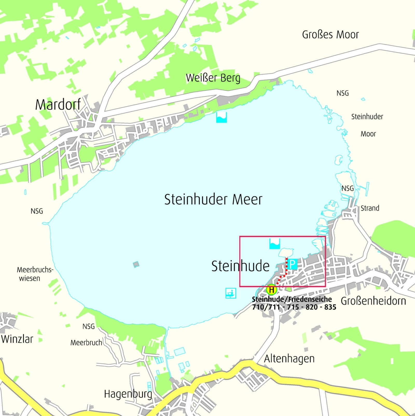 Die Badeinsel befindet sich am südöstlichen Ufer des Steinhuder Meeres, dem größten Flachsee in Deutschland.