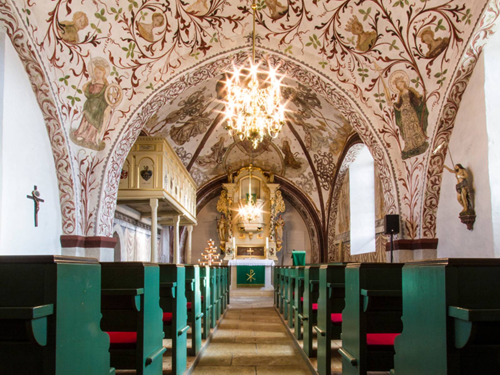 Die St. Agatha-Kirche aus dem Jahr 1229 feiert 2017 ihren 788. Geburtstag. Sie wurde im Übergangsstil der ersten Hälfte des 13. Jahrhunderts errichtet. Die gotischen Fresken im Chor und im Orgelgewölbe stammen aus dem 15. Jahrhundert, während die Fresken im Kirchenschiff in den Zeitraum 1370 bis 1430 datiert werden. Wer in das Gewölbe der Kirche blickt, sieht 4 heilige Märtyrerinnen mit ihrem Gefolge. Im Chor bekommt man einen Eindruck vom christlichen Weltbild der damaligen Zeit und seinem klaren Dualismus von Himmel und Hölle bzw. Christus als Weltenretter. Der klassizistische Orgelprospekt ist zudem ein Geschenk des Freiherrn Wilhelm Knigge von 1808.