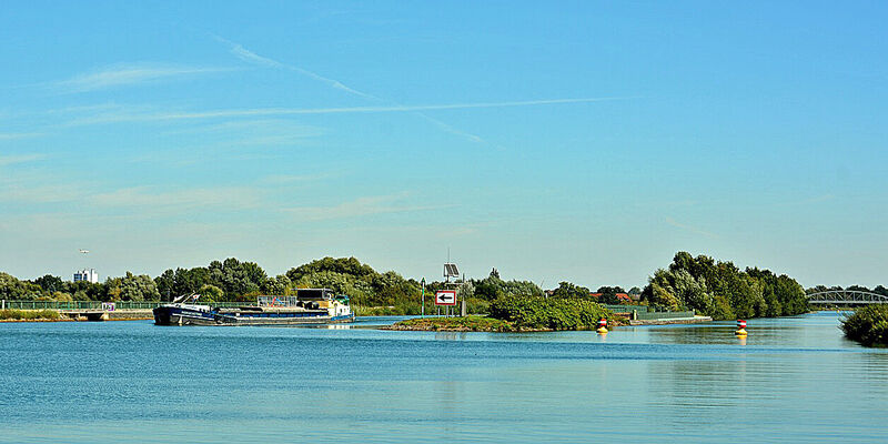 Über eine breite Trogbrücke an der sehenswerten Wasserstraßen-Kreuzung können die großen Frachter gemächlich auf Hannovers "Canale Grande" quer durchs Land schippern, während Ausflügler darunter gemütlich auf dem Blauen durchs Grüne paddeln.