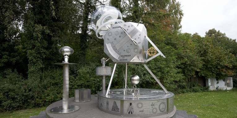 Seit einiger Zeit gibt es in Wennigsen (Deister) eine Sonnenuhr. Das Zeitmonument wurde zum Anlass des 80. Geburtstages und seiner 25-jährigen Tätigkeit mit Sonnenuhren vom Feinmechanikermeister Erich Pollähne erstellt.Alle Metallteile des Gebildes sind aus rostfreiem Stahl, die Zeichnungen sind geätzt und schwarz verchromt, die Basaltsteine haben eine sehr lange Lebensdauer. Die Sonnenuhr besteht aus einer Sockelplatte, die als Abdeckplatte eine Kreuzform zeigt. Es ist die Zeichnung der Steingravur von Bornholm mit dem sechzehnteiligen Kalender der Germanen. Die Fußplatte ist mit einer Edelstahlzarge ausgestattet. Diese Zarge trägt 18 Bilder aus Zeitmessung und Astronomie bis zur Gegenwart mit Mondlandung, dem "kleinen Schritt" von Neil Armstrong. Die Deckplatte des Sonnenuhrfußes trägt im Mittelpunkt die Ansicht der Erde mit ausgefächerter Südhalbkugel. Der platonische Würfel (Südfläche) zeigt die Hauptuhr. Auf dem Würfel ist die Horizontaluhr angeordnet (Oberseite). Sie zeigt die babylonischen und italienischen Stunden. Die aus Acrylglas gefertigte Äquatorialuhr steht wie der Südfuß des Würfels ebenfalls erdachsparallel. Hier ist die Ablesung von Normal und auch Sommerzeit in MEZ möglich.