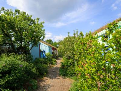 Von 1983 – 85 wurde in Selbsthilfe ein ungewöhnliches Gemeinschaftswohnprojekt mit 69 Häusern realisiert, dessen Grasdächer namensgebend wurden: die Grasdachsiedlung in Lahe. Nach Entwurf der Architekten Hermann Boockhoff und Helmut Rentrop wurden nach konstruktivem Musterentwurf an schmalen, grünen Wohnwegen Holzhäuser mit Gartenhof errichtet und ein autofreier, grüner Anger für Kinderspiel und Feste angelegt. Farbiges Holz, offene Wintergärten und viel Grün an und auf den Häusern schufen nach Meinung einer Bewohnerin eine Mischung aus „Intellektuellen-Ghetto und Bullerbü“. Wer aber aus einem Obergeschoss über die Dachlandschaft aus Gras schaut, meint auf einer Nordseeinsel zu sein, wo Natur, Wohnen und Dünenlandschaft eine Einheit bilden.