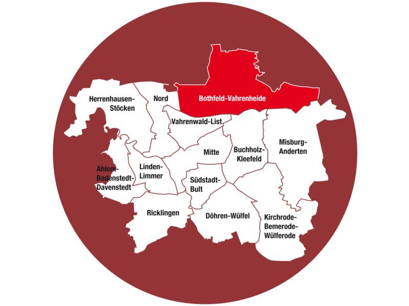 Vahrenheide, Sahlkamp, Bothfeld, Lahe und Isernhagen-Süd gründen den 3. und flächenmäßig größten Stadtbezirk.