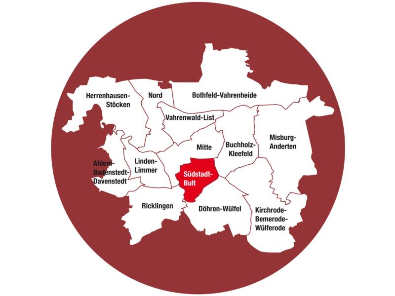 Der 7. Bezirk Südstadt-Bult erstreckt sich über insgesamt 7,17km² und beherbergt fast 44.000 Einwohnerinnen und Einwohner (Stand 2020). Mit dem Maschsee in der Südstadt und dem als teilweise ausgewiesenen Landschatsschutzgebiet „Alte Bult“ im Stadtteil Bult gilt der Bezirk als grün. In den Zwanziger Jahren wurde Südstadt-Bult mit Wohnungen überwiegend für Angestellte und Beamte ausgebaut.