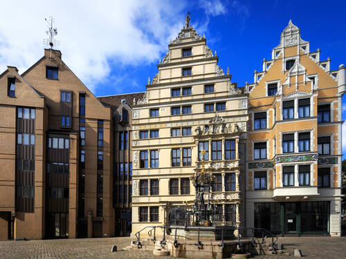 Das reich verzierte Bürgerhaus entstand 1499 im Stil der Renaissance, allerdings an anderer Stelle – dies ist eine originalgetreue Rekonstruktion aus den 1980er-Jahren. Das Patrizierhaus stand in der Schmiedestraße 10 (heute ein Parkhaus) und wurde im Zweiten Weltkrieg zerstört. Leibniz zog am 29. September 1698 mit der Kurfürstlichen Bibliothek in das Gebäude. Für seine zahllosen Ideen, die er täglich auf Zetteln vermerkte, ließ er sich einen Schrank bauen. Mehrere Jahre wohnte auch sein Schüler und Sekretär Rafael Levi in dem Gebäude. Im ersten Geschoss des Vorbaus, „Utlucht“ genannt, starb Leibniz am 14. November 1716 mit 70 Jahren. Nach der Renovierung Ende 2016 gibt es wieder Veranstaltungen im Haus.